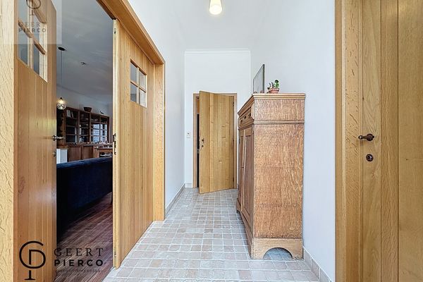 Deze woonst werd met bijzonder veel zorg en smaak gerenoveerd, waarbij karaktervolle elementen bewust werden behouden en gecombineerd met kwaliteitsvolle materialen zoals massieve eik, Italiaanse natuursteen en verfijnde stijlelementen die leven en warmte creëren in elke ruimte.