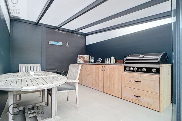 De tuin – die zich uitstrekt tot achteraan het perceel - beschikt over een groot terras met gezellige tuinkamer en verder nog een tuinberging met knusse zithoek.