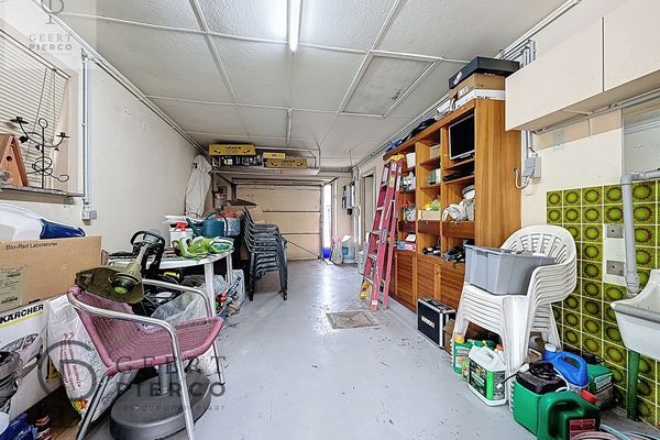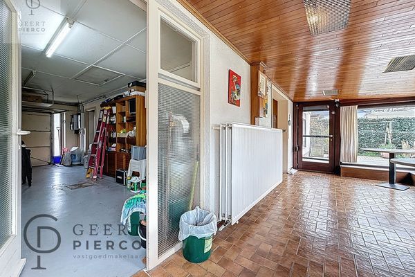 Via de veranda hebben we toegang tot de garage en een aparte berging, waar zich de verwarmingsketel op aardgas bevindt.