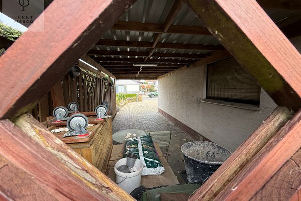 Bij aankomst valt meteen de rust en de openheid van het perceel op. De woning beschikt over een ruime oprit, een afgesloten garage en een praktische carport.