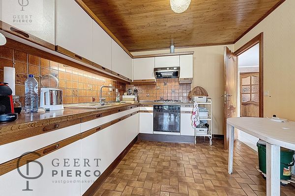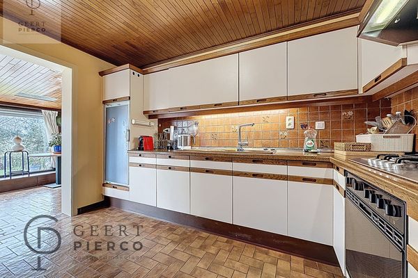 Aansluitend vinden we de open keuken, die naadloos overgaat in de veranda. Deze lichtrijke ruimte zorgt voor een aangename verbinding tussen binnen en buiten.