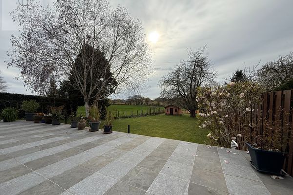 De tuin vloeit als het ware over in het achterliggende landschap, wat zorgt voor een bijzonder aangenaam en open gevoel.