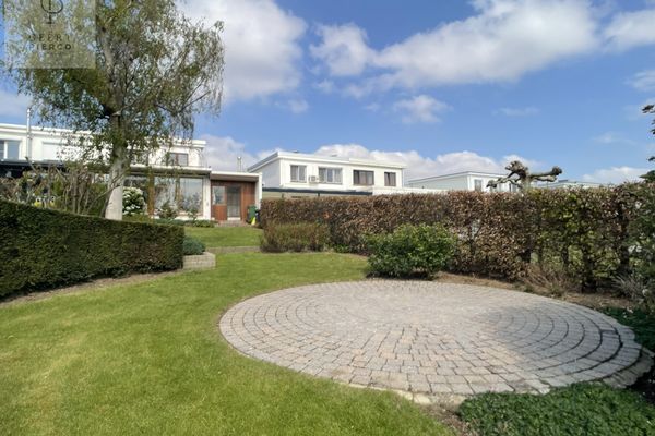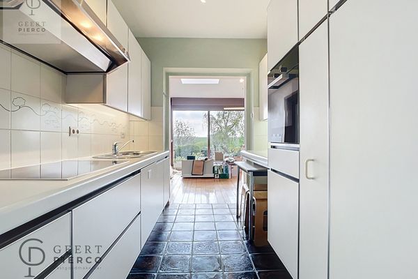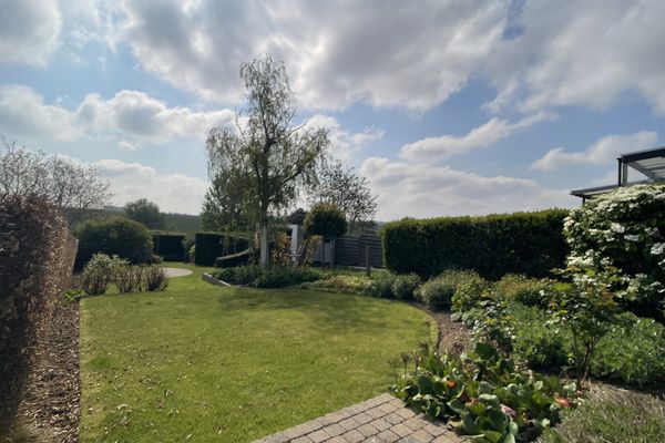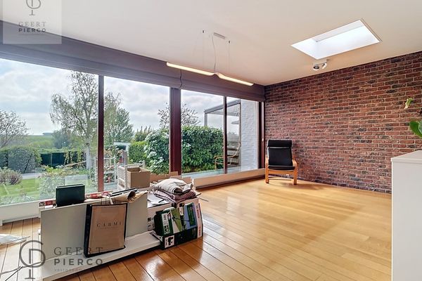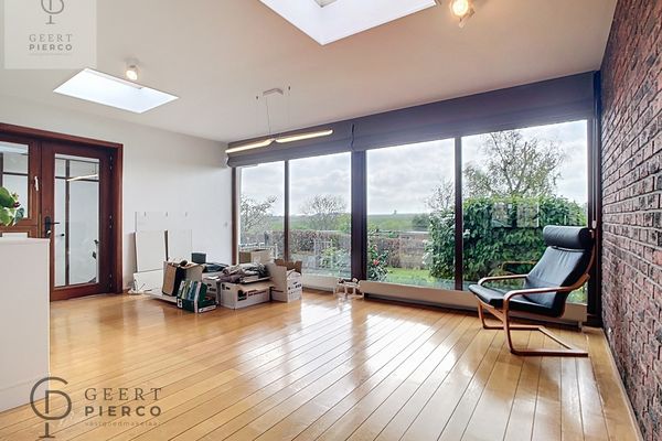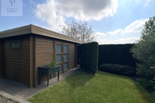-het gelijkvloers : de hal, een enorme leefruimte met aansluitend de keuken, allemaal met zicht op de tuin en de velden, een wasplaats/berging, het toilet, een kleine vestiaire met extra berging, de ruime garage met elektrische poort, de ruimte voor de verwarmingsketel. De perfect onderhouden tuin hier aansluitend spreekt boekdelen. Achteraan in de tuin tref je tevens een vrij recente en moderne tuinwoning.