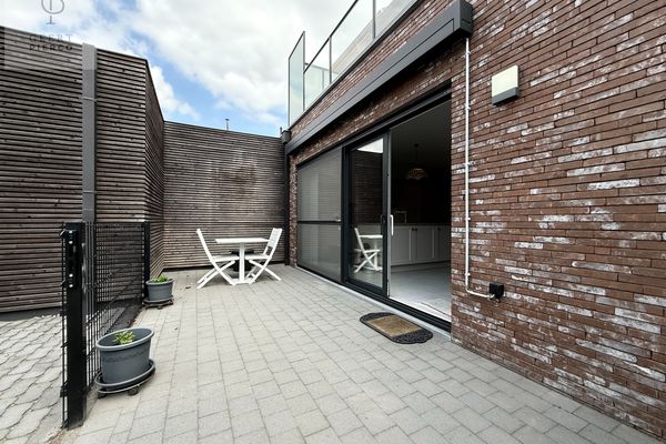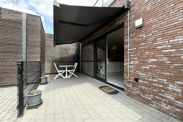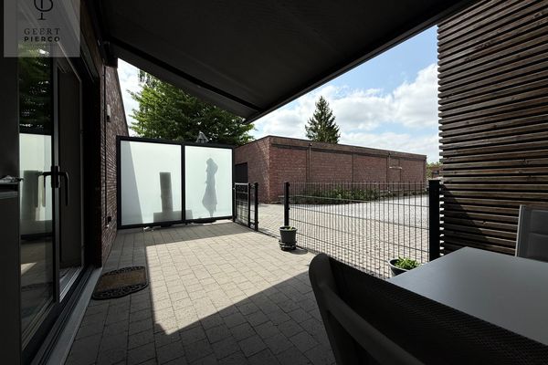 Het terras van ongeveer 15m² is ook voorzien van een automatische luifel en is afgesloten met hekwerk.