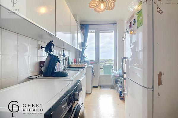 Het appartement ligt op de 7de verdieping van een verzorgd gebouw en biedt een prachtig uitzicht over de omliggende velden. Dankzij lift en trap is het vlot toegankelijk voor iedereen.