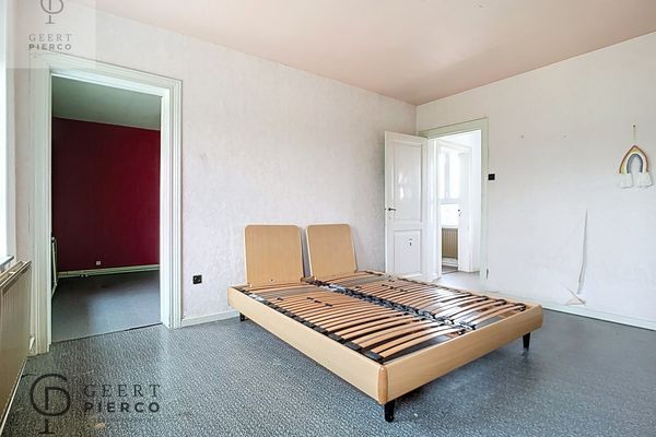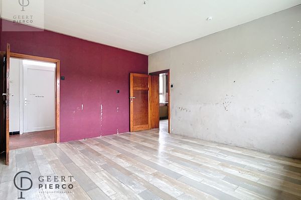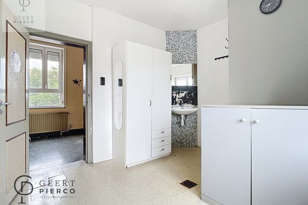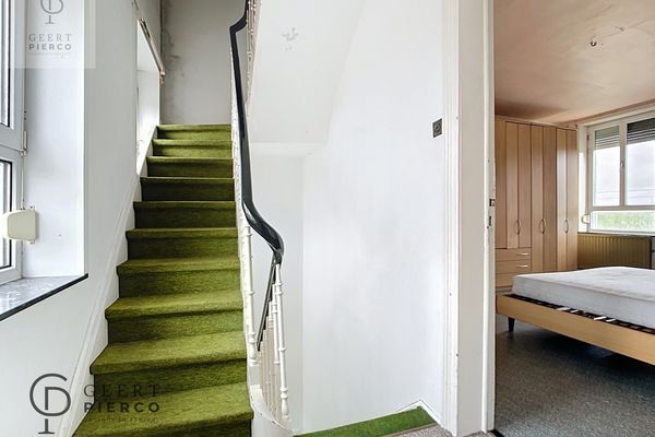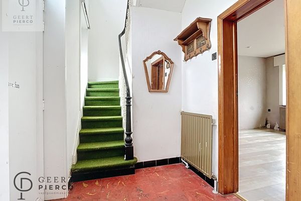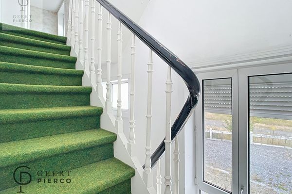 We betreden het pand via de centrale inkomhal dewelke doorgang biedt tot alle woongelegenheden. De vaste trap, gelegen aan de linkerzijde, zal ons naar de bovengelegen slaapvertrekken en zolderruimte leiden.