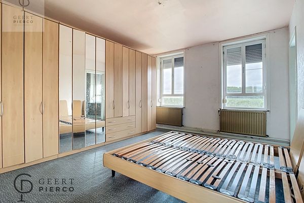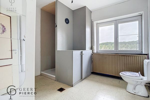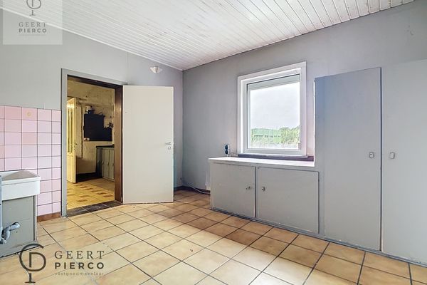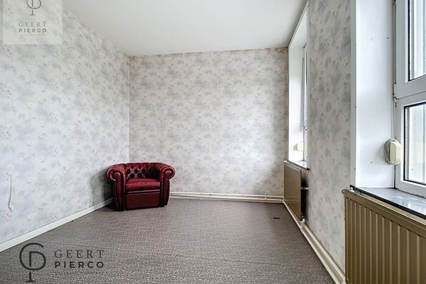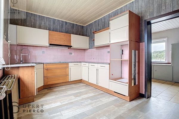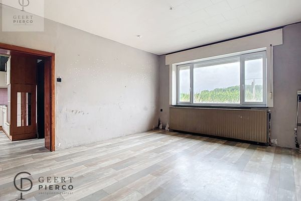 De ruime woonkamer bevindt zich aan de achterzijde van het pand dewelke zicht heeft op de spoorlijn. Naastliggend treffen we de keuken met aansluitend de ruime berging. Vanuit de keuken heeft men via de keldertrap toegang tot de cv-ruimte en koele kelderberging.
