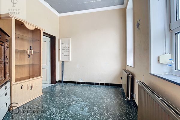 Aan rechterzijde van de inkomhal bevindt zich een bureelruimte met aansluitend de badkamer.
