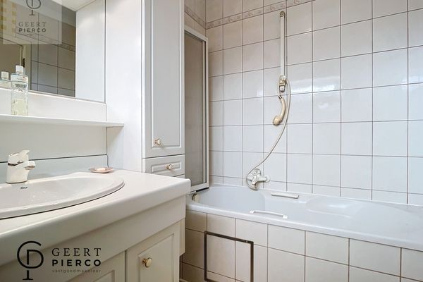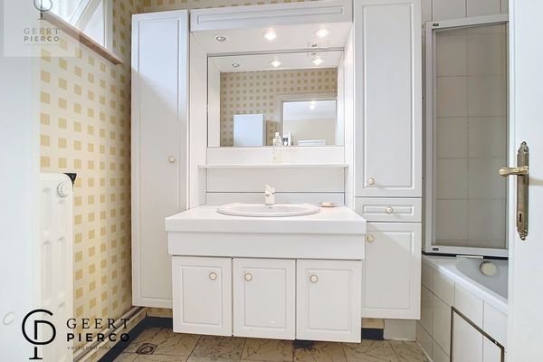 De badkamer bevindt zich op het gelijkvloers, naast de keuken.
