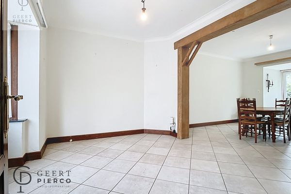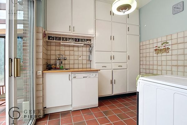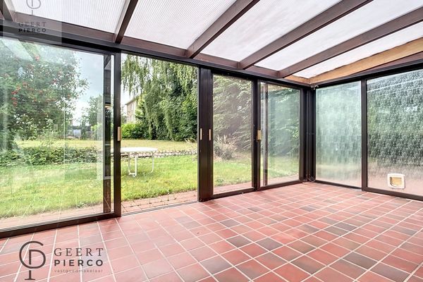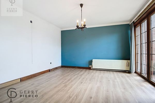 De leefruimte is een aangename plek om te vertoeven en geeft meteen toegang tot de keuken, die best een renovatie kan gebruiken. Om de woonst nog aangenamer te maken, heb je ook toegang tot een veranda met zonneluifel. Van hieruit heb je een totaalzicht op de tuin.
