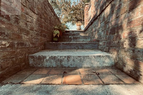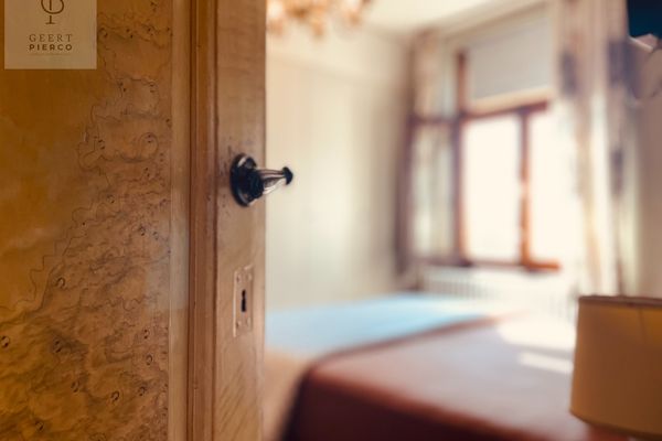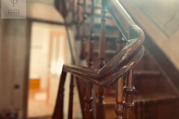 Het terras en de tuin laten we voor het laatste en we begeven ons naar het verdiep via de trap in de inkomhal.