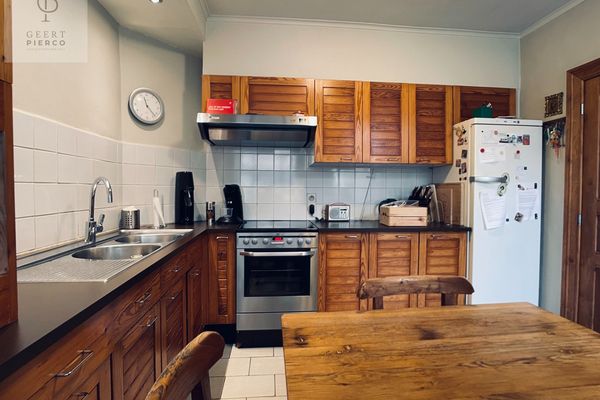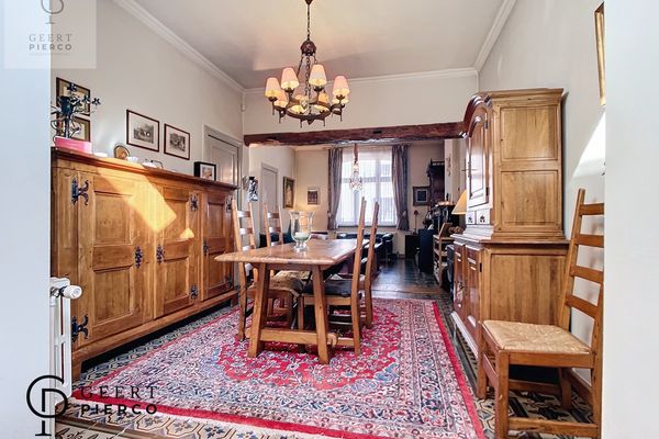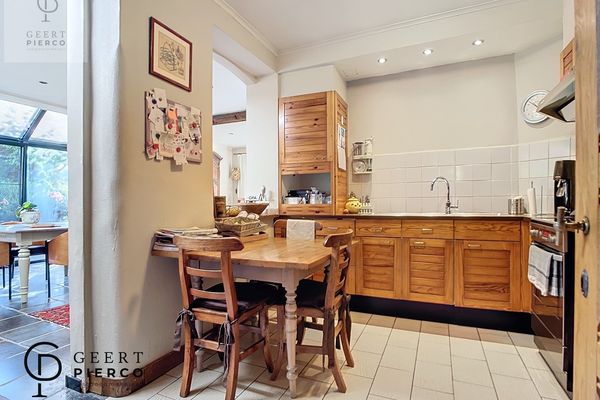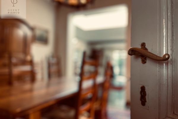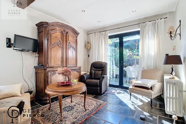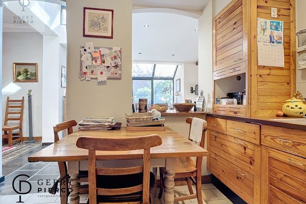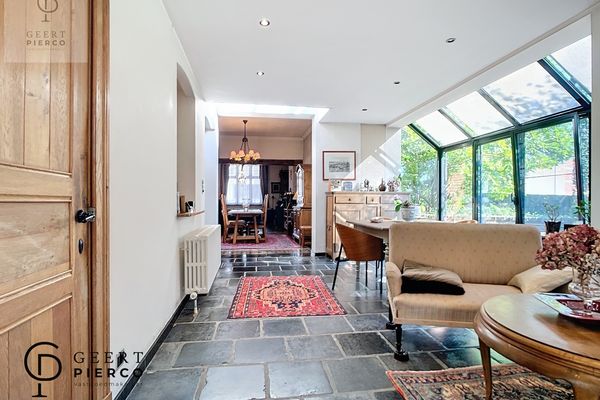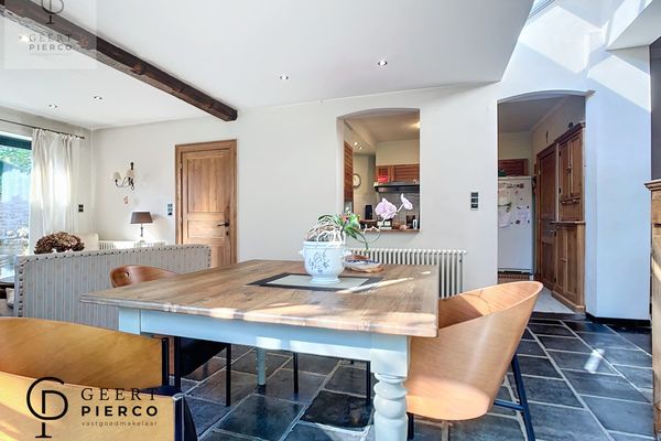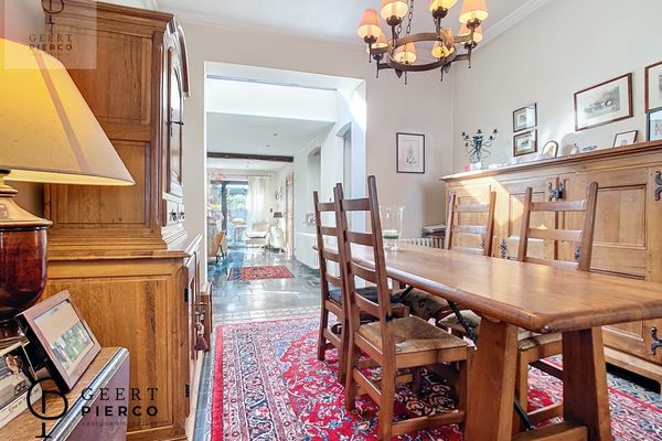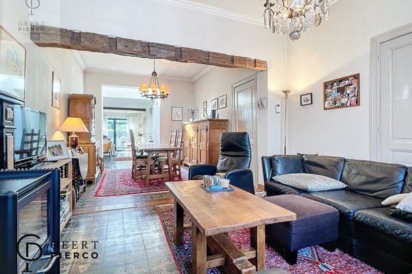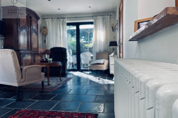 De leefruimte is een ruime leefruimte die helemaal tot achteraan de woning loopt via een nieuwe en modernere uitbouw, doch werd het karakter goed bewaard gebleven.
