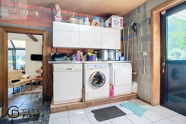 Via de bijbouw kunnen we ons begeven naar de ruime berging waar plaats voorzien is voor was- en droogautomaat, maar ook voor alle technieken die in de woning aanwezig zijn.