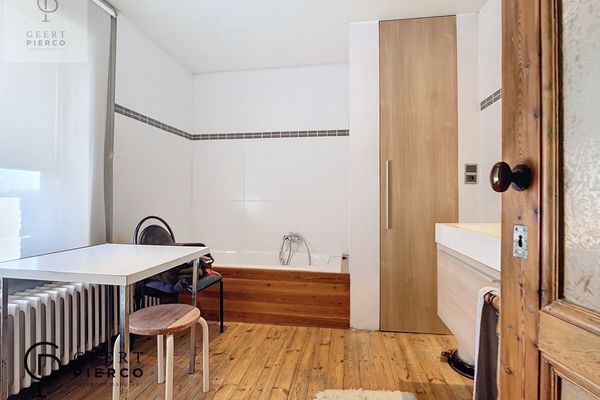 Deze woonst heeft ook nog een tussenverdiep waar we eerst de badkamer tegenkomen met ligbad, het 1ste verdiep op zijn beurt telt 3 slaapkamers, 2 ruimere kamers, waarvan 1 kamer met ingebouwde kasten.