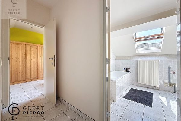 Het duplex gedeelte voorziet een gastentoilet, de badkamer en de ruime slaapkamer.