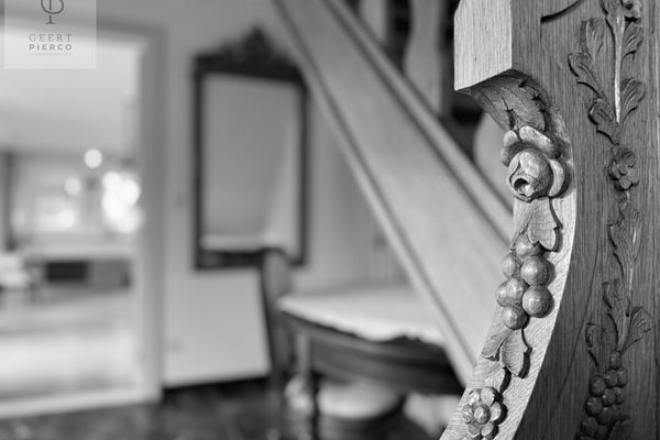 Via de voordeur met loodglas betreden we de woning. De statige inkomhal zet meteen de toon en nodigt uit om verder te ontdekken.