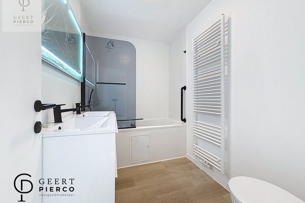 een tweede, volledig ingerichte badkamer met bad en douche.