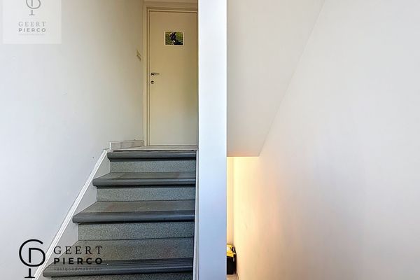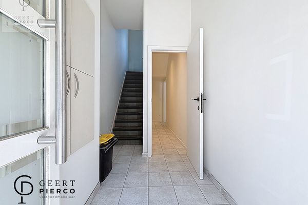 We betreden dit pand via de gemeenschappelijke inkomhal, waarbij het gelijkvloers is afgeschermd met een veiligheidsdeur.