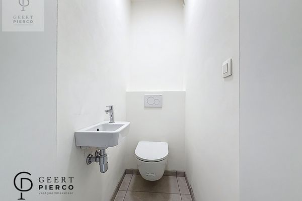 Het duplex gedeelte voorziet een gastentoilet, de badkamer en de ruime slaapkamer.