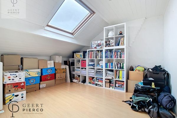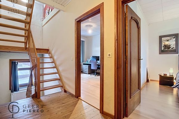 De vaste trap leidt ons verder naar de ingerichte zolderverdieping, waar nog eens twee bijkomende kamers zijn ondergebracht — ideaal als extra slaapkamers, hobbyruimte of bureau.