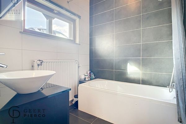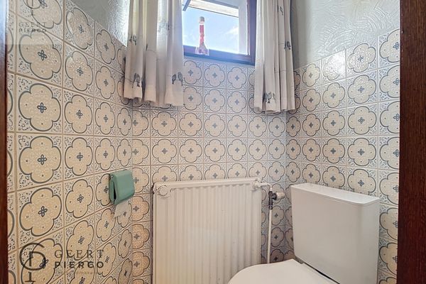 Achteraan vinden we een praktische gang met toegang tot een apart toilet, berging, badkamer en natuurlijk de veranda, van waaruit je zo de tuin inloopt.