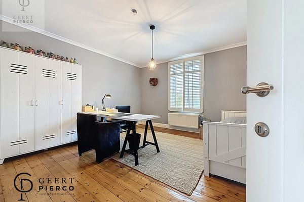 De houten vloer en het authentieke schrijnwerk vormen een prachtig contrast met moderne accenten en subtiele verlichting. Het geheel straalt rust, klasse en verfijning uit — een plek waar je je instant thuis voelt.