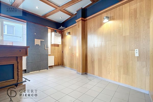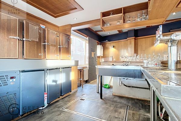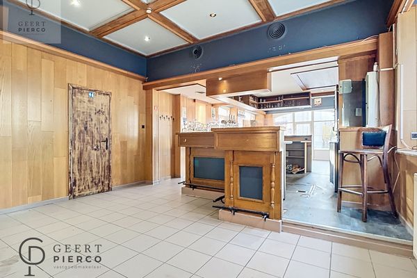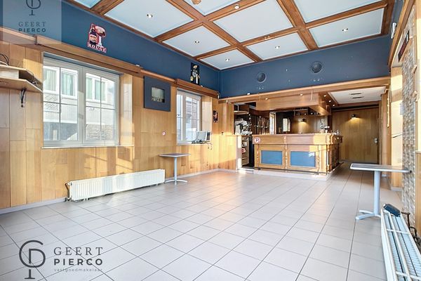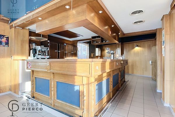 Het gelijkvloers bestaat uit het voormalige cafégedeelte: een ruime, open handelsruimte met veel passage en visibiliteit. Achter de toog bevindt zich de toegang tot de kelder, waar recent de volledige tapinstallatie werd vernieuwd.