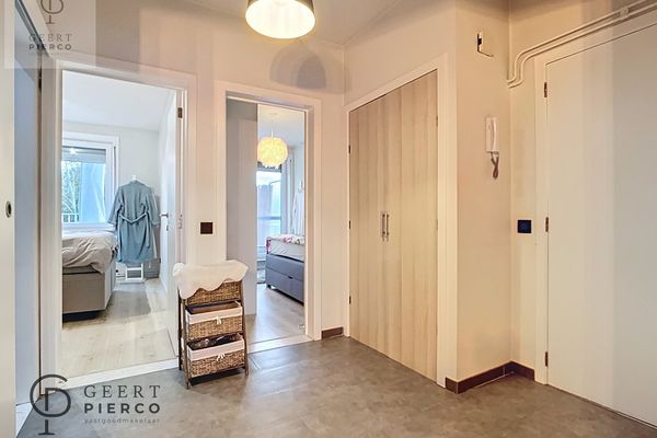 De centrale inkomhal met vestiaire en gastentoilet geeft doorgang tot de woon- en slaapvertrekken. De leefruimte en geïnstalleerde keuken vormen samen één geheel, waardoor je geniet van een aangename, open sfeer.