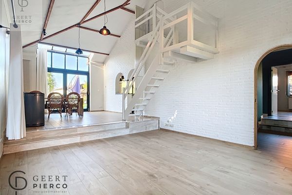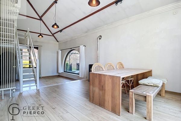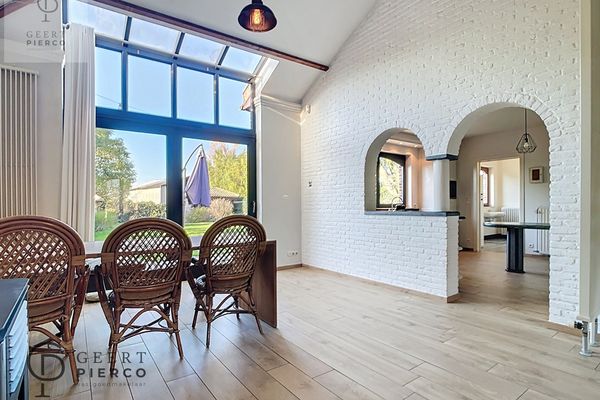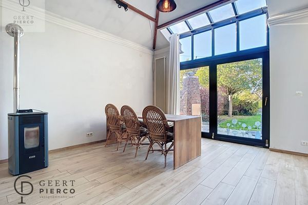 De woonkamer, met zicht en toegang tot het terras en de achtertuin, kan worden opgedeeld in een ruime zitkamer en eetkamer. De pellet-kachel zorgt alvast voor de extra gezelligheid op koudere winteravonden.