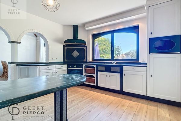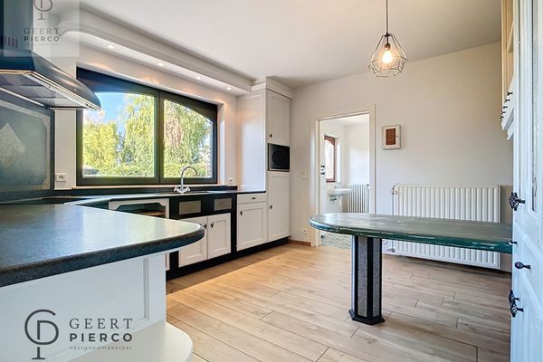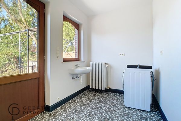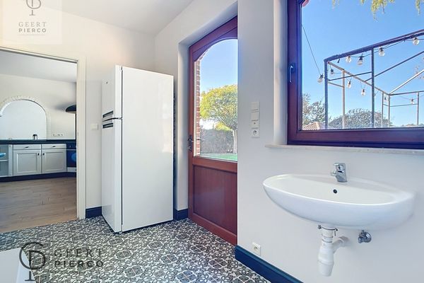 Aansluitend bevindt zich de keuken en de wasplaats. Deze volledig geïnstalleerde keuken zorgt voor het nodige comfort. Via de wasplaats is eveneens de tuin bereikbaar.