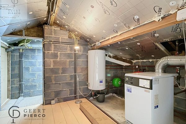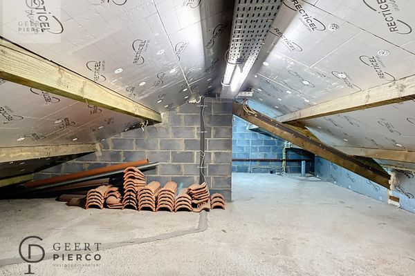 Via de open houten trap in de woonkamer is de zolderruimte bereikbaar. Hier bevindt zich de verwarmingsinstallatie en véél extra bergruimte.