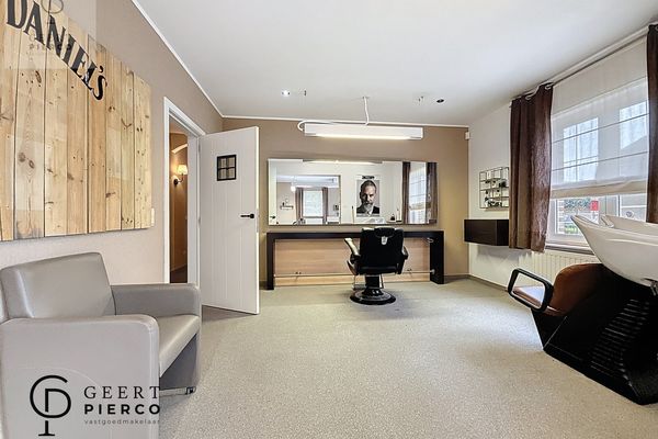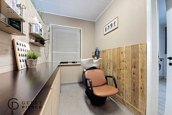 Bovendien is er op het gelijkvloers een praktische praktijkruimte voorzien, momenteel ingericht als kapsalon — ideaal voor een zelfstandige activiteit of praktijk aan huis.