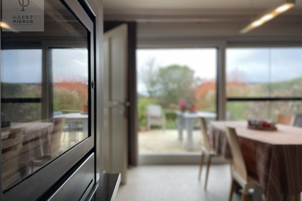De leefruimte is voorzien met een knappe gashaard om de avonden absoluut gezellig te maken. Toppie is ook het absolute zicht op de tuin en het groen rondom de woning.