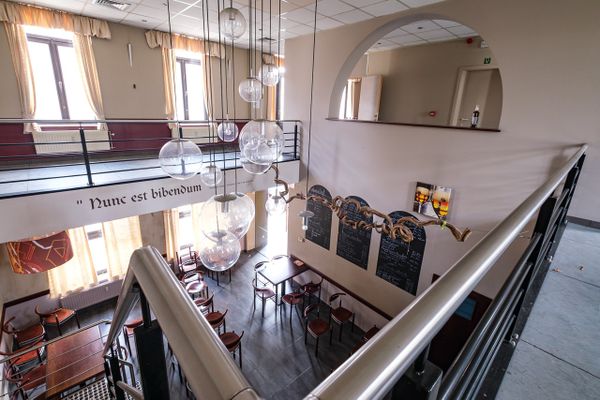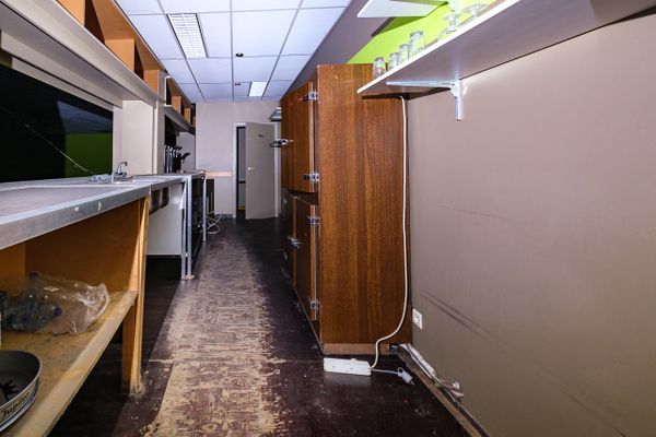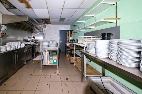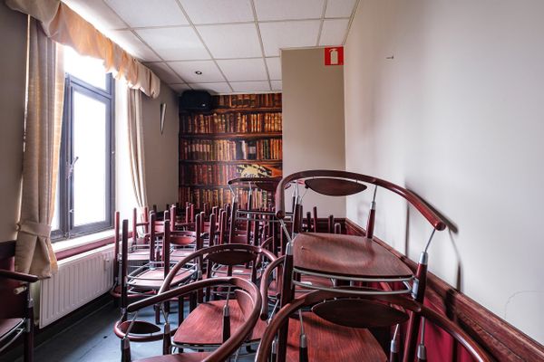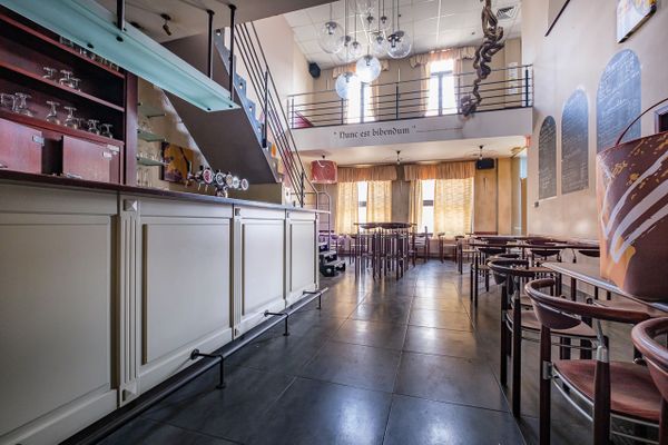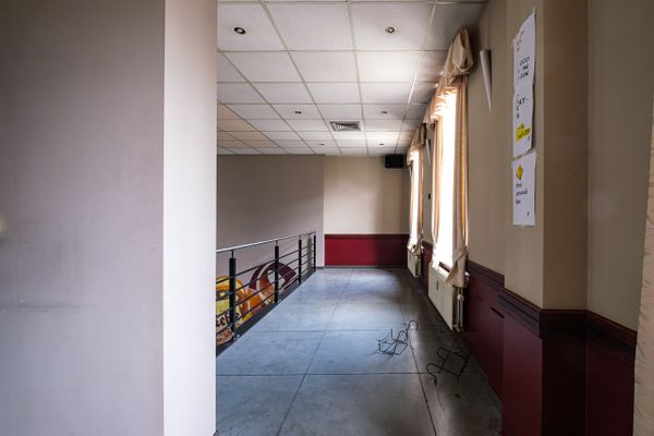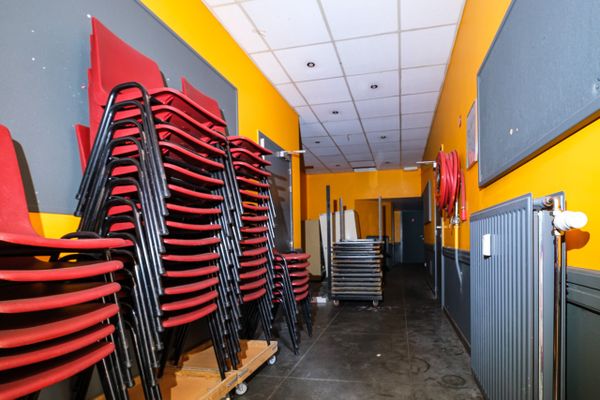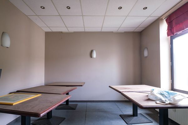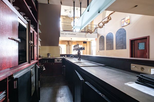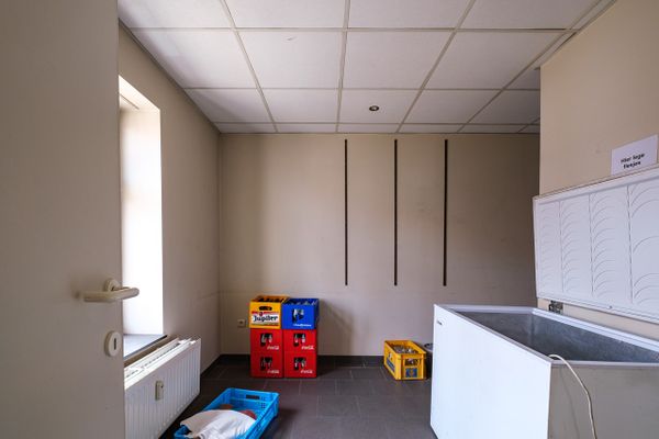 In het café is alles nog aanwezig, van toog tot tafels, bar, koelkasten, noem maar op.