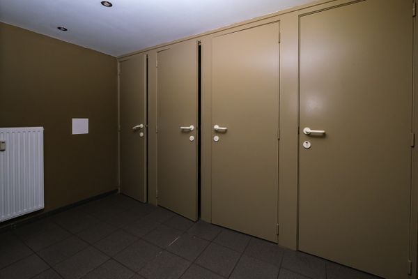 Via de feestzaal en keuken zijn er aparte uitgangen naar de buitenparking achteraan.