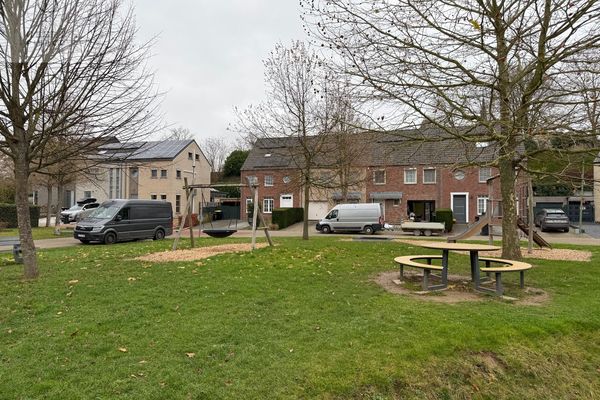 Vlak voor de woning is er zelfs een leuk graspleintje met enkele speeltuigen voor de kinderen.