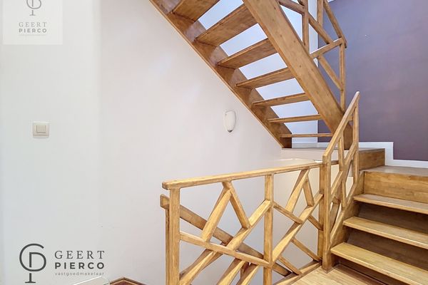 Op de eerste verdieping vinden we de badkamer, het toilet en een slaapkamer terug. De slaapkamer kan eveneens gebruikt worden als bureel of als knusse zitplaats.