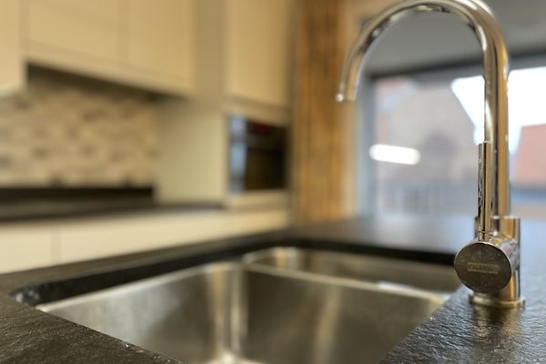 De keuken is voorzien van een leuk eiland en met het ruim terras aan jouw linkerkant zorgt dit voor extra lichtinval.