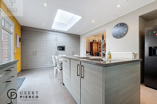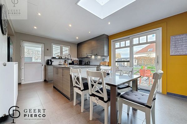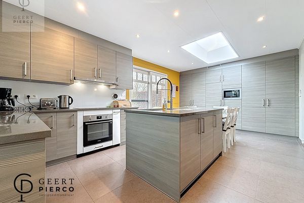 Aansluitend bevindt zich de open, ingerichte keuken, die naadloos overgaat in de leefruimte.
