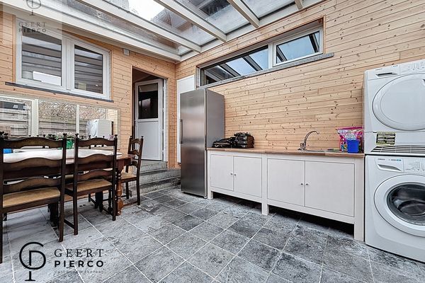 Via de keuken bereiken we de veranda, die toegang geeft tot de tuin én tot een aparte ruimte in het bijgebouw.