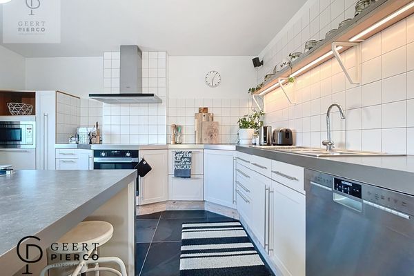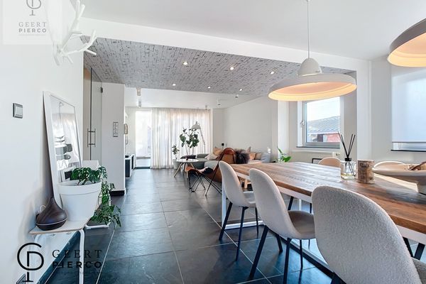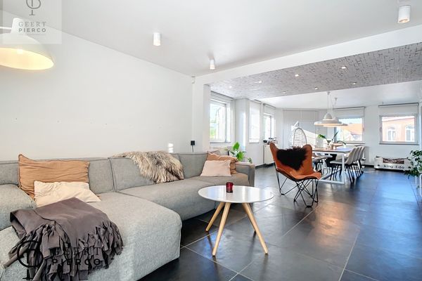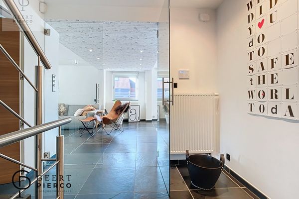 Boven de handelsruimte bevindt zich het knap en stijlvol ingerichte appartement met gigantisch zonnig dakterras.