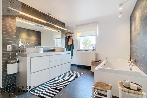 Het 1ste verdiep telt ook nog de badkamer met dubbele lavabo, bad, douche en toilet.