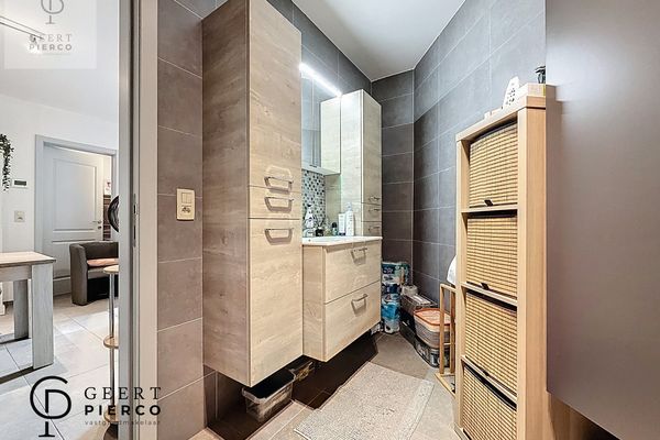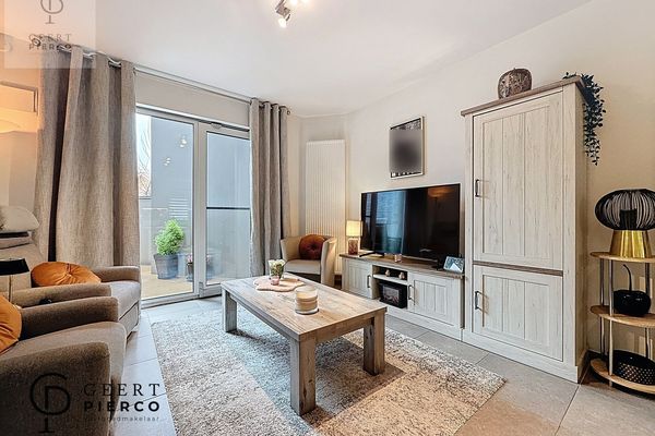 Het gelijkvloers appartement met terras aan de achterzijde werd door de bewoners bijzonder smaakvol ingericht. Het oudere koppel onderhoudt het geheel met de grootste zorg, alsof het hun eigen eigendom betreft — wat zich duidelijk vertaalt in de uitstekende staat van het appartement.