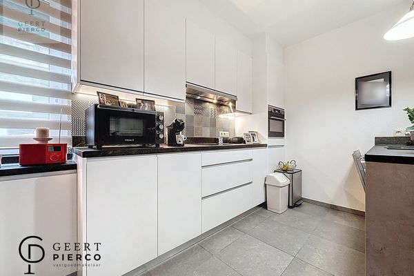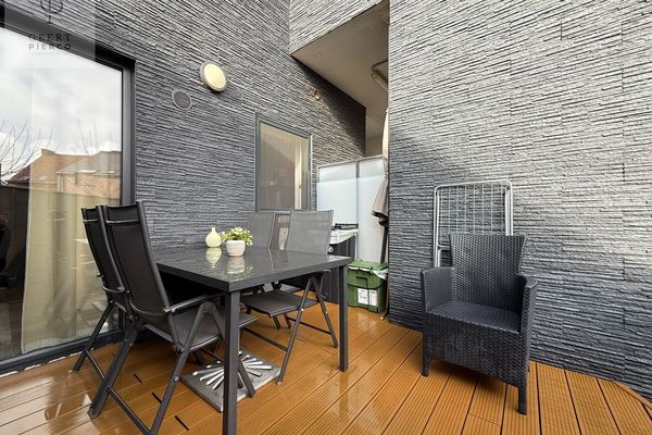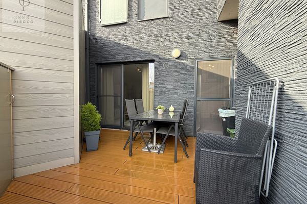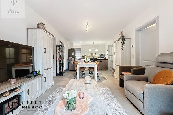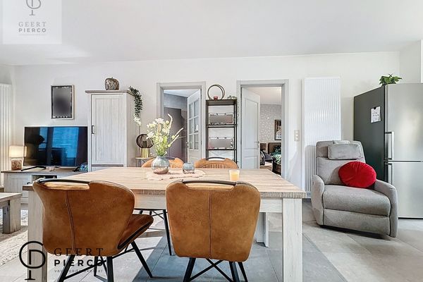 De gezellige leefruimte met open keuken vormt het hart van de woning en werd knus en modern ingericht. Alles is perfect onderhouden. De volledig uitgeruste keuken met eiland sluit naadloos aan op de eetplaats en de comfortabele zithoek, die uitgeeft op het terras achteraan.