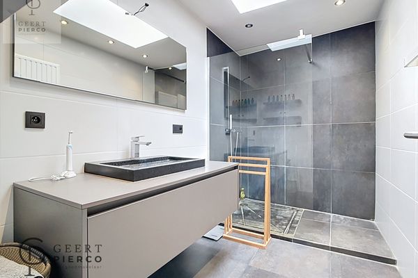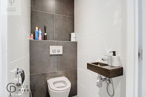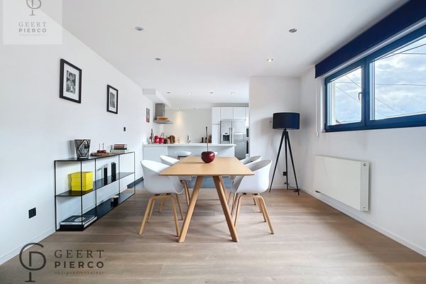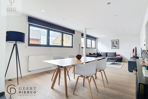 Je treft er een prachtige leefruimte met geïntegreerde keuken. Het parket dat er ligt zorgt voor alle gezelligheid. Verder tref je een mooie badkamer met inloopdouche, een toilet, twee ruime slaapkamers en een terras.