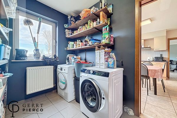 Aansluitend bevindt zich de berging/bijkeuken met aansluitingen voor was- en droogmachine.