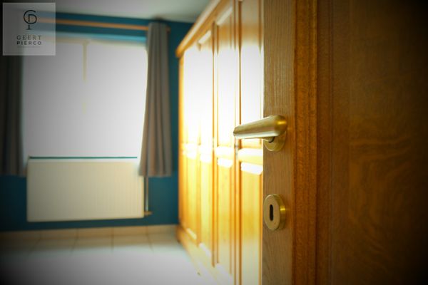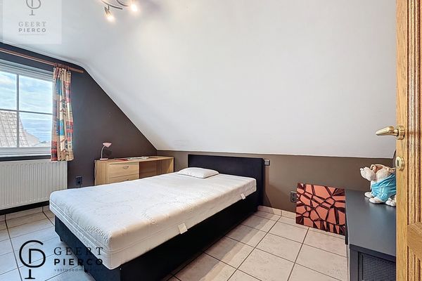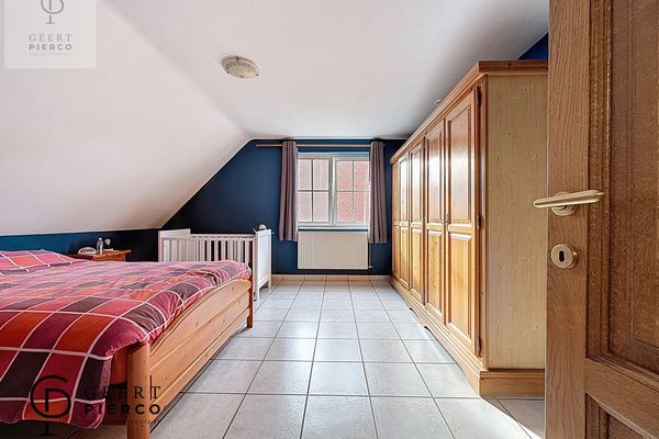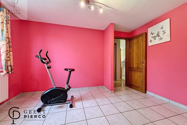 Via deze ruimte bereiken we ook de voormalige garage, die werd ingericht als extra slaapkamer en voorzien is van een aparte douche en toilet — ideaal als gastenkamer, praktijkruimte of gelijkvloerse slaapoplossing.