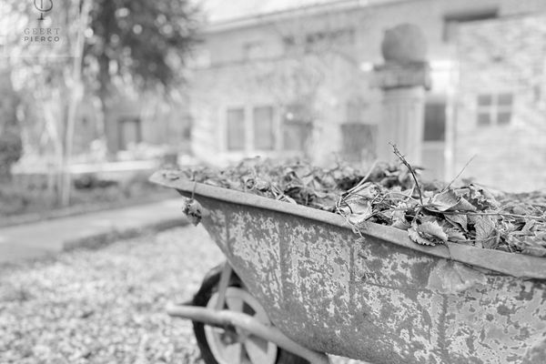 Via deze berging bereiken we het terras en de tuin.