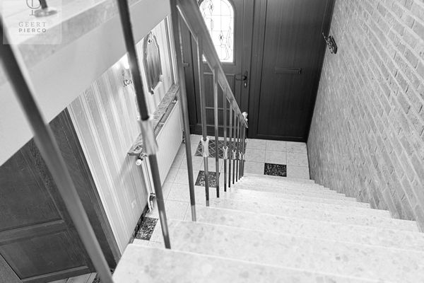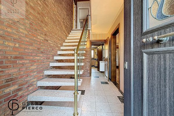 We betreden de woning via de inkomhal, waar zich meteen een eerste toilet en de trap naar het verdiep bevinden.