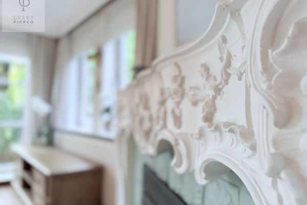 De leefruimte is een eerste blikvanger: de houten parketvloer, de houtkachel en de stijlvolle schouwmantel creëren een sfeer van gezelligheid en klasse. Het voelt alsof je binnenstapt in een klein kasteeltje.